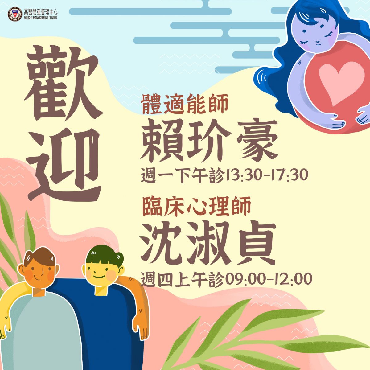 體適能師 賴玠豪 星期一下午 13:30-17:30 服務項目: 基本體適能處方規劃、體適能諮詢與動作指導